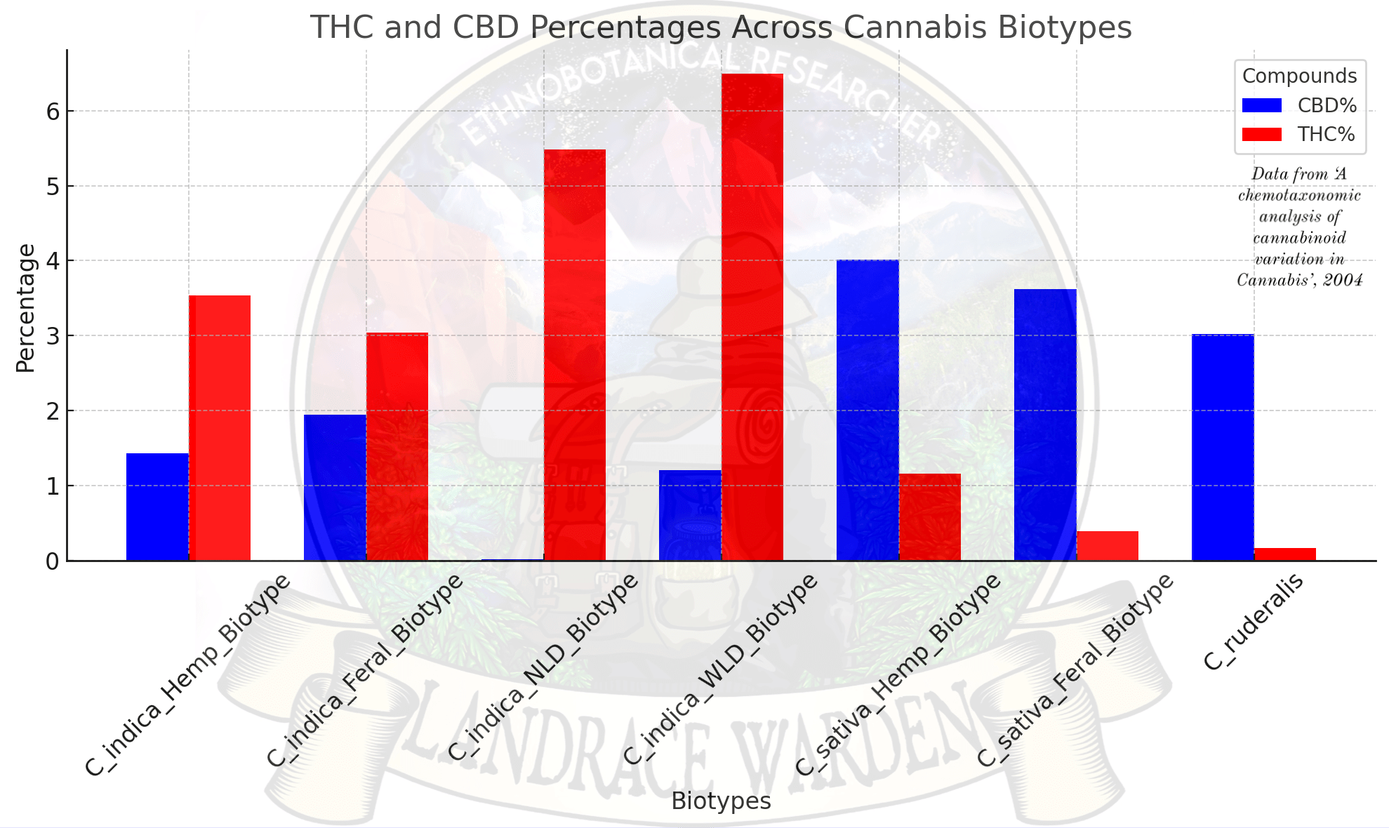 A look at the average % of cannabinoids found naturally in the various cannabis biotypes shows that the idea of ‘hemp’ being low in THC, or always being CBD dominant, would be an EU centric view on the industrial use of the cannabis plant.