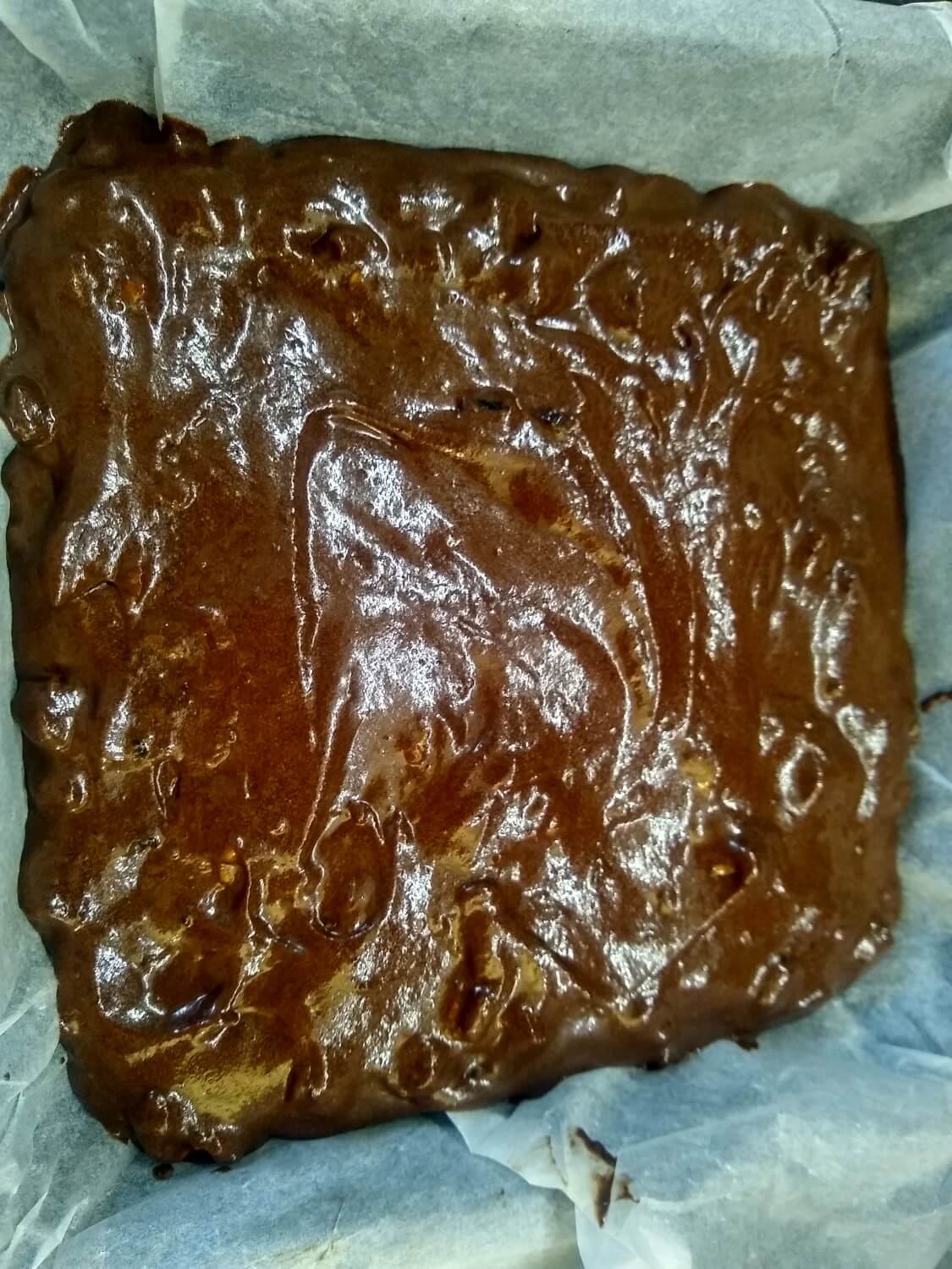 Bake for 25 minutes until the brownies have a crunchy top. Insert a skewer into the centre; if it comes out clean, you’re good to go.
